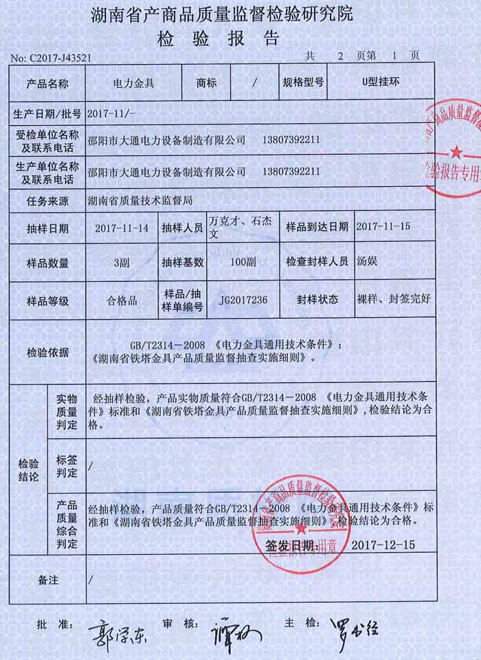 U型掛環檢驗報告