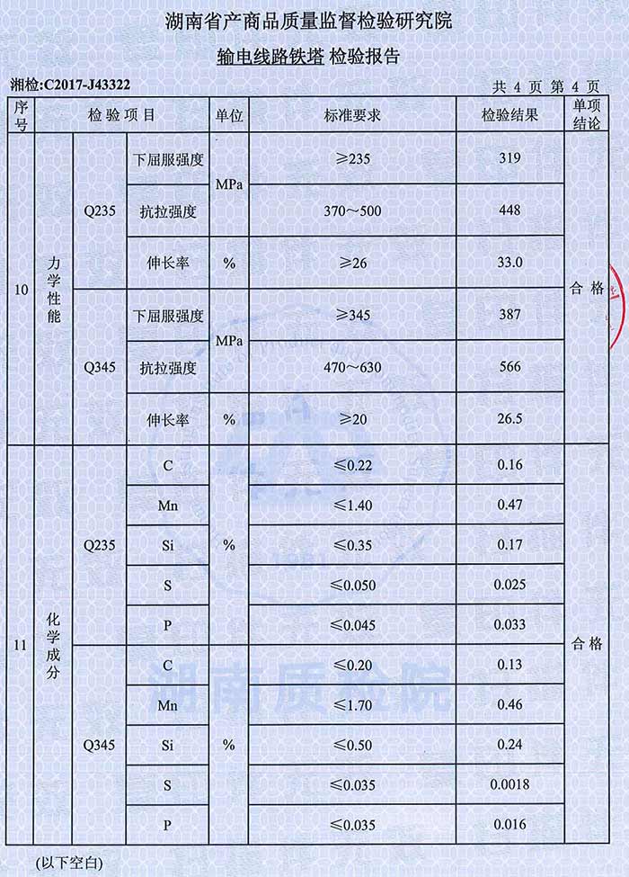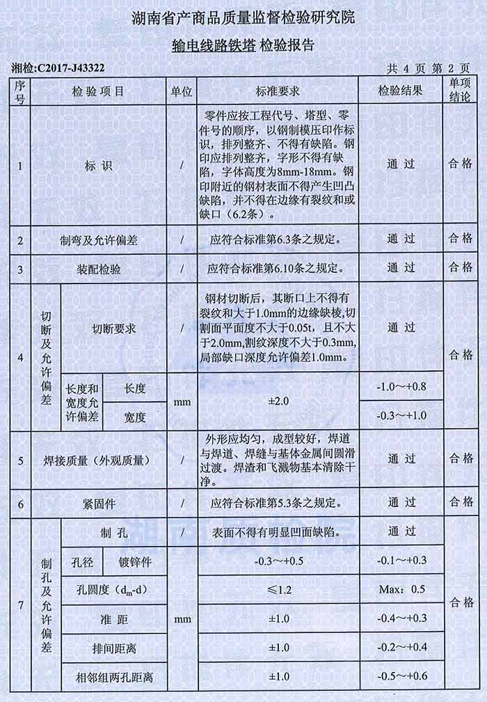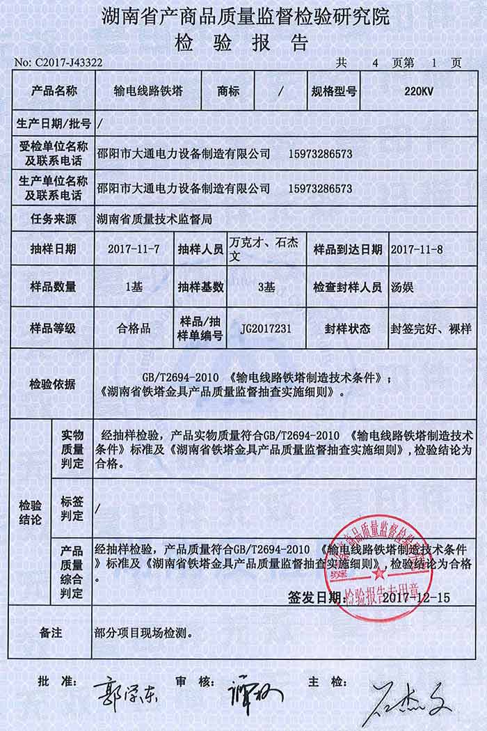 220KV鐵塔檢驗報告